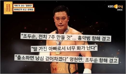 최근에는 저승사자라는 별칭을 가지고 있는 격투기 선수 명현만이 출소일에 그를 참교육하겠다는 의사를 밝혔는데요. 실제로 조두순을 보려고 포항교도소까지 갔다는 실화가 공개되기도 했습니다.